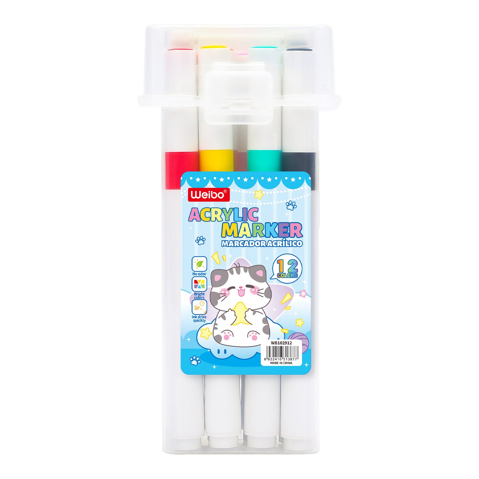 Weibo Acrylic Marker 12-Color Water-Based Paint Marker for Kids Art, Craft, Coloring, and Multi-Surface Drawing