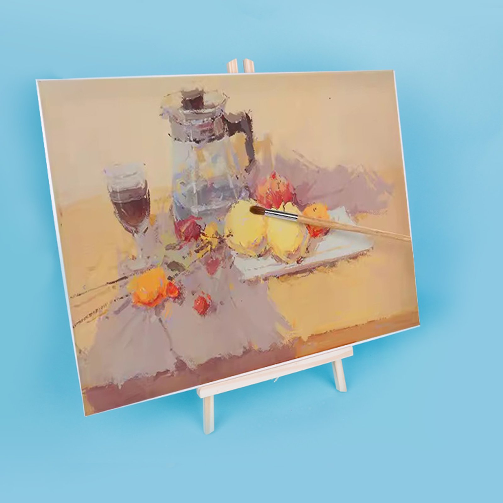 Material: Triple-primed cotton canvas stretched on sturdy wooden frame with natural pine wood tabletop easel