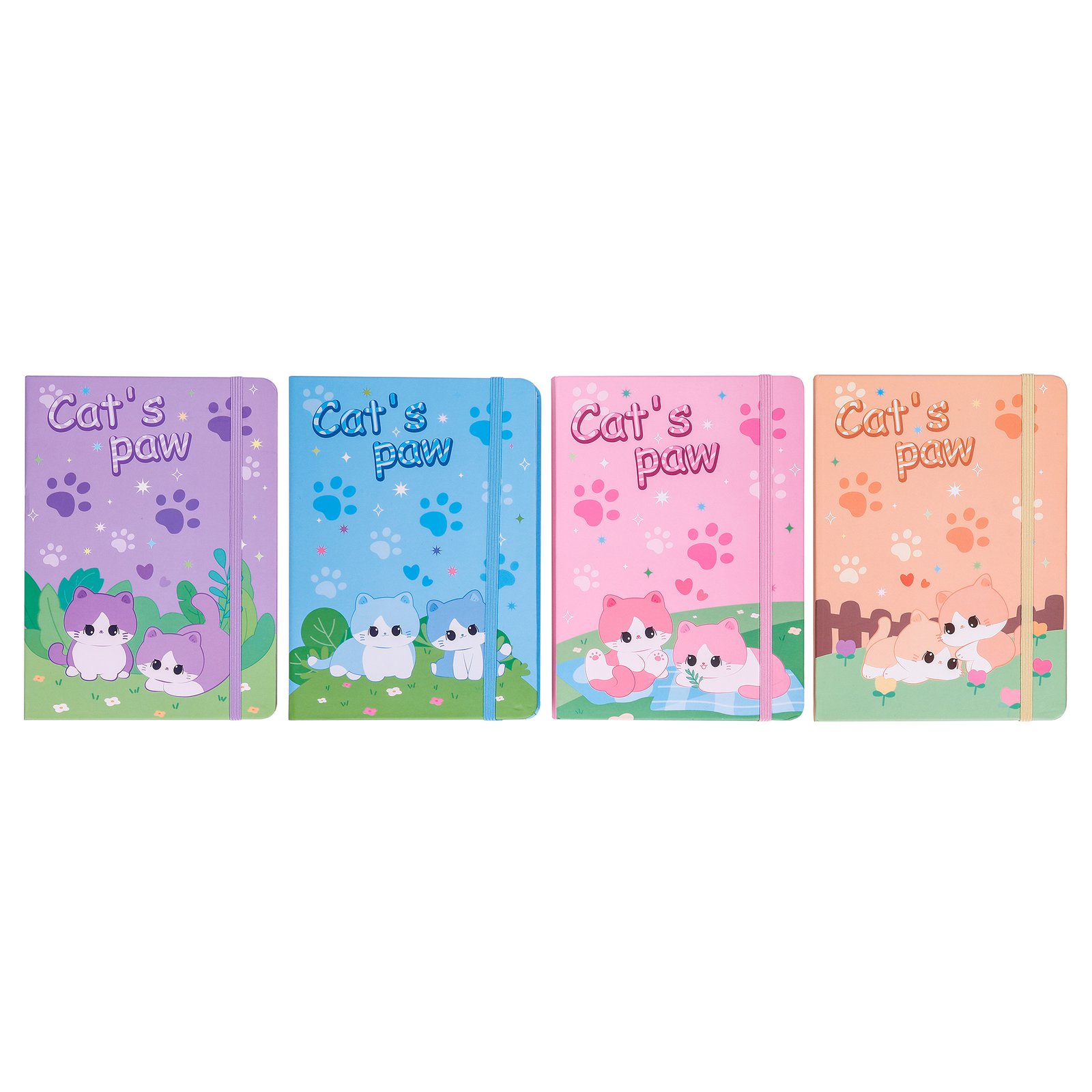 Weibo Cat’s Paw Elastic Band Notebook – Cute Cartoon A6 Lined Journal for School & Gifts