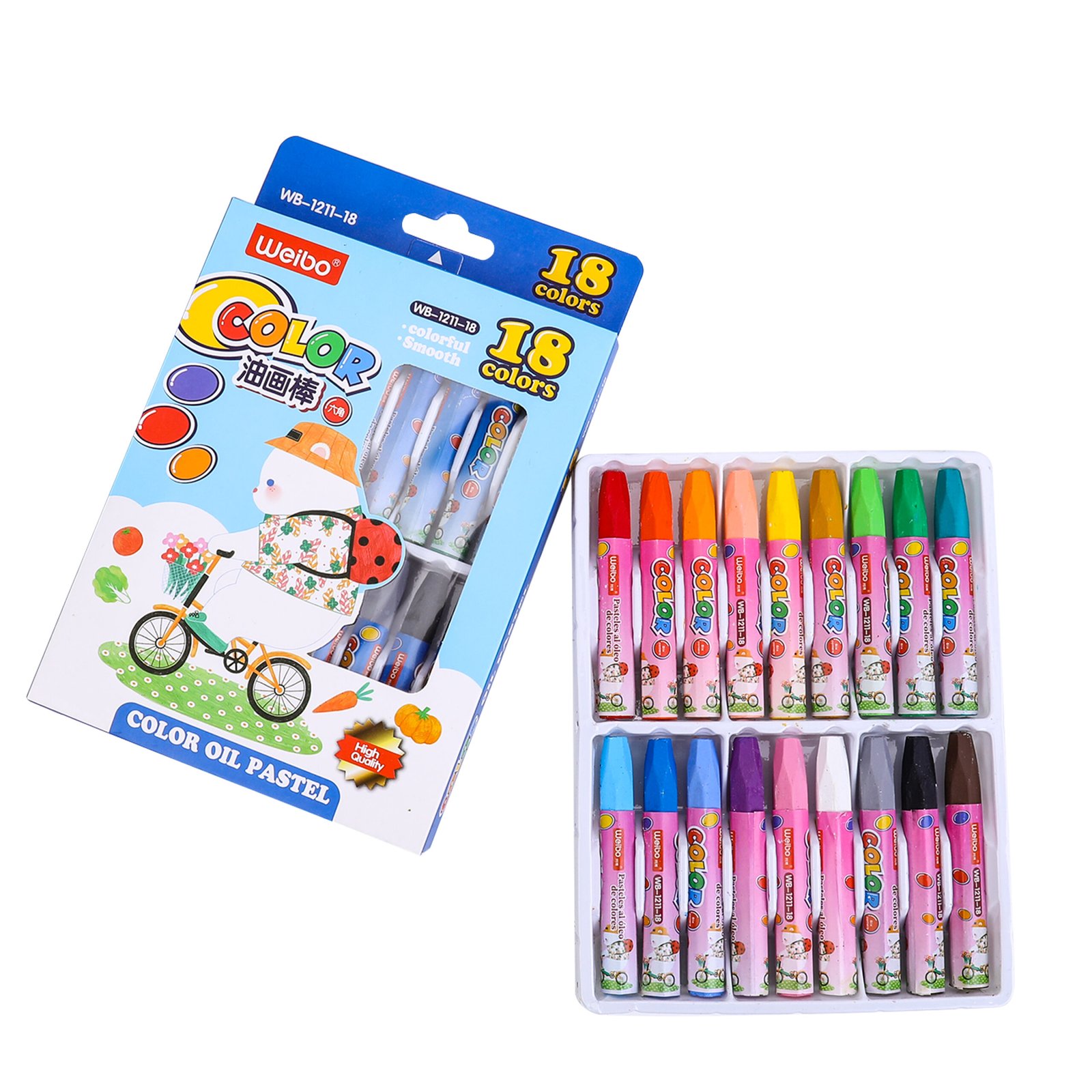 Weibo Color Oil Pastels WB-1211-18 – Vibrant 18 Colors Set for Kids and Student Art Activities