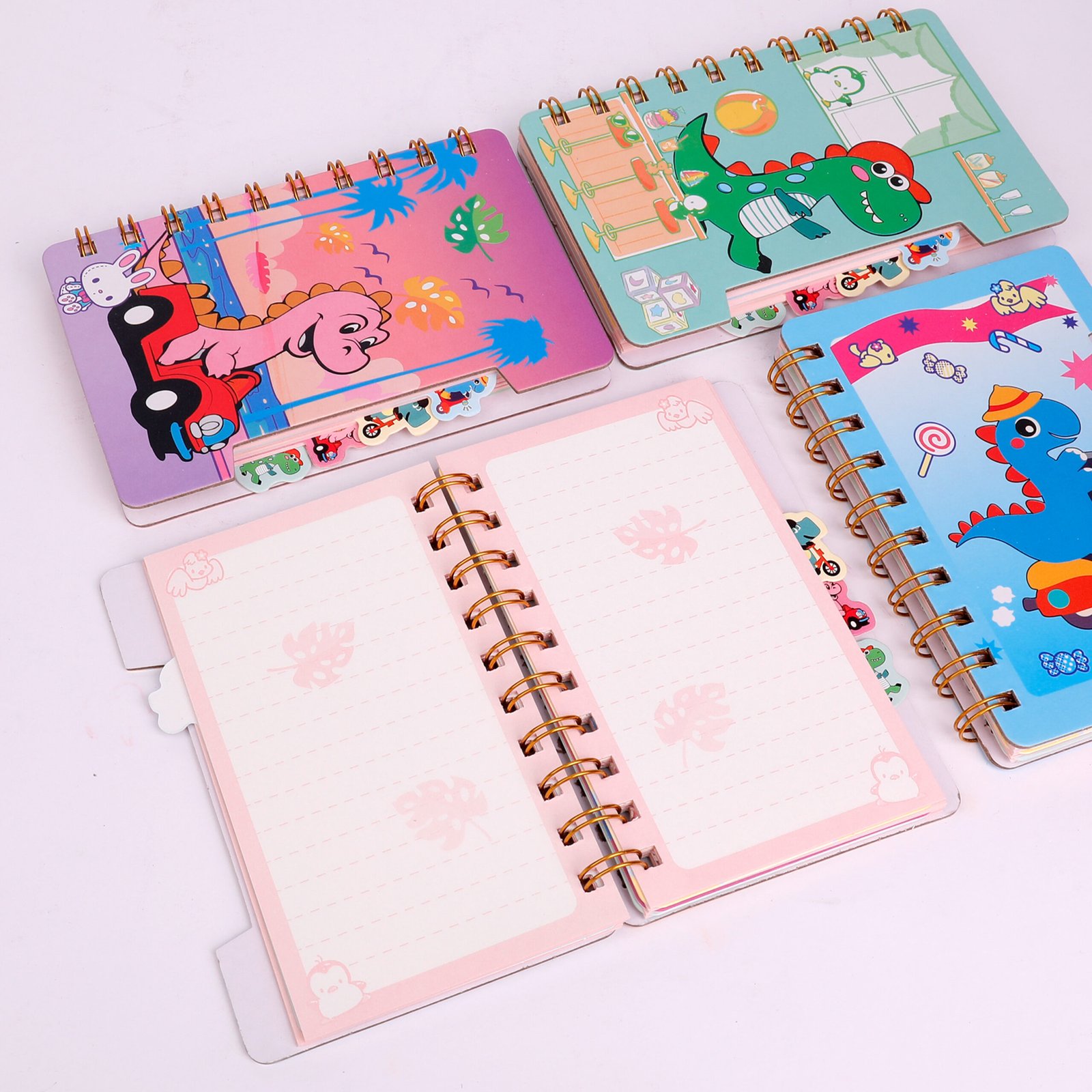 Weibo Cute Dinosaur Spiral Notebook with Colorful Tabs – Kids & Students Stationery