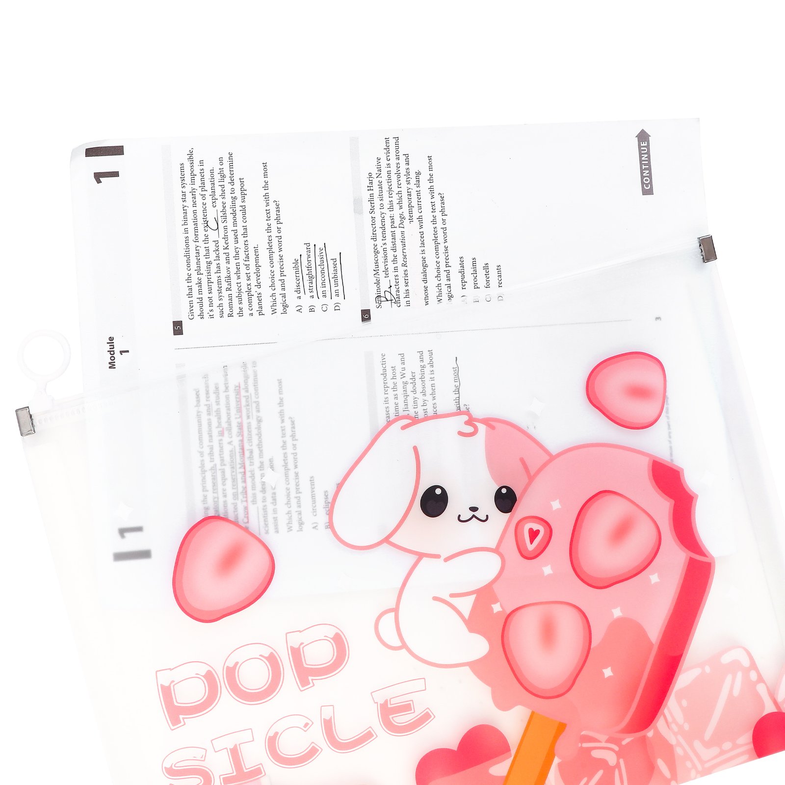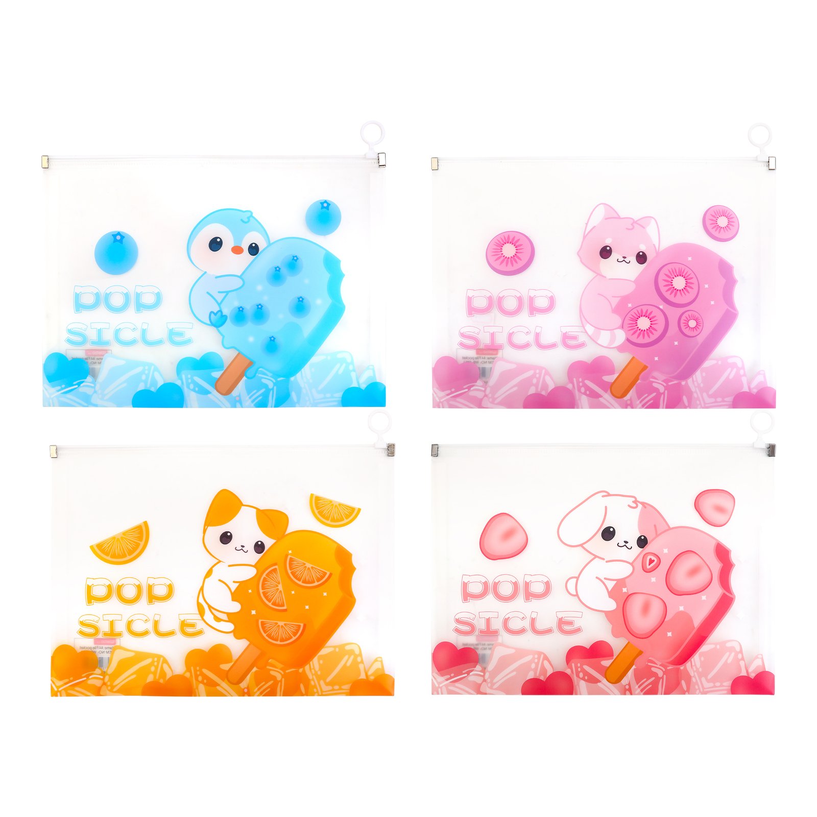 Weibo Cute Popsicle Cartoon Zipper Document Pouch WB-5853 – A4 Translucent File Bag with Hanging Ring for School & Office