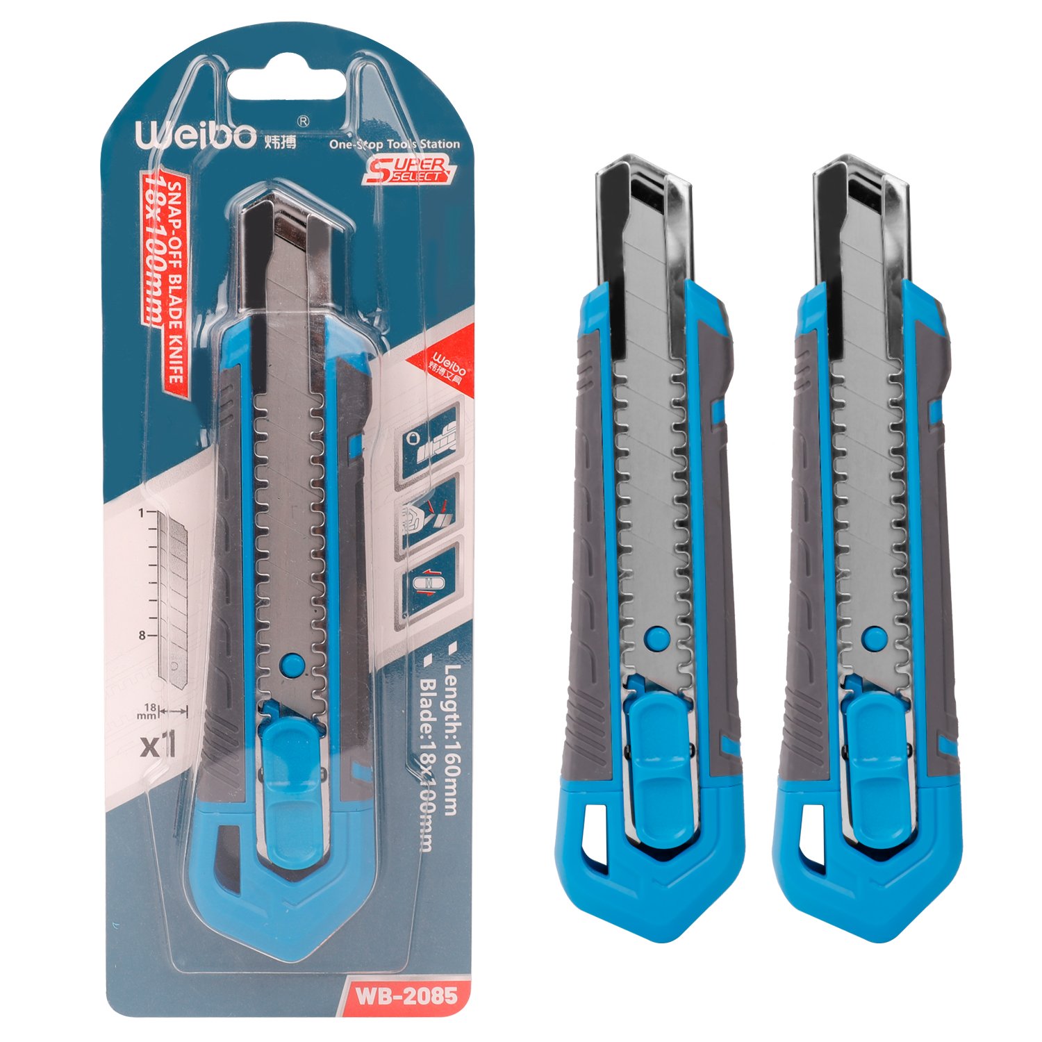 Weibo Heavy-Duty Snap-Off Utility Knife WB-2085 – 18mm Professional Box Cutter with Blade Snapper for Warehouse & Industrial Use