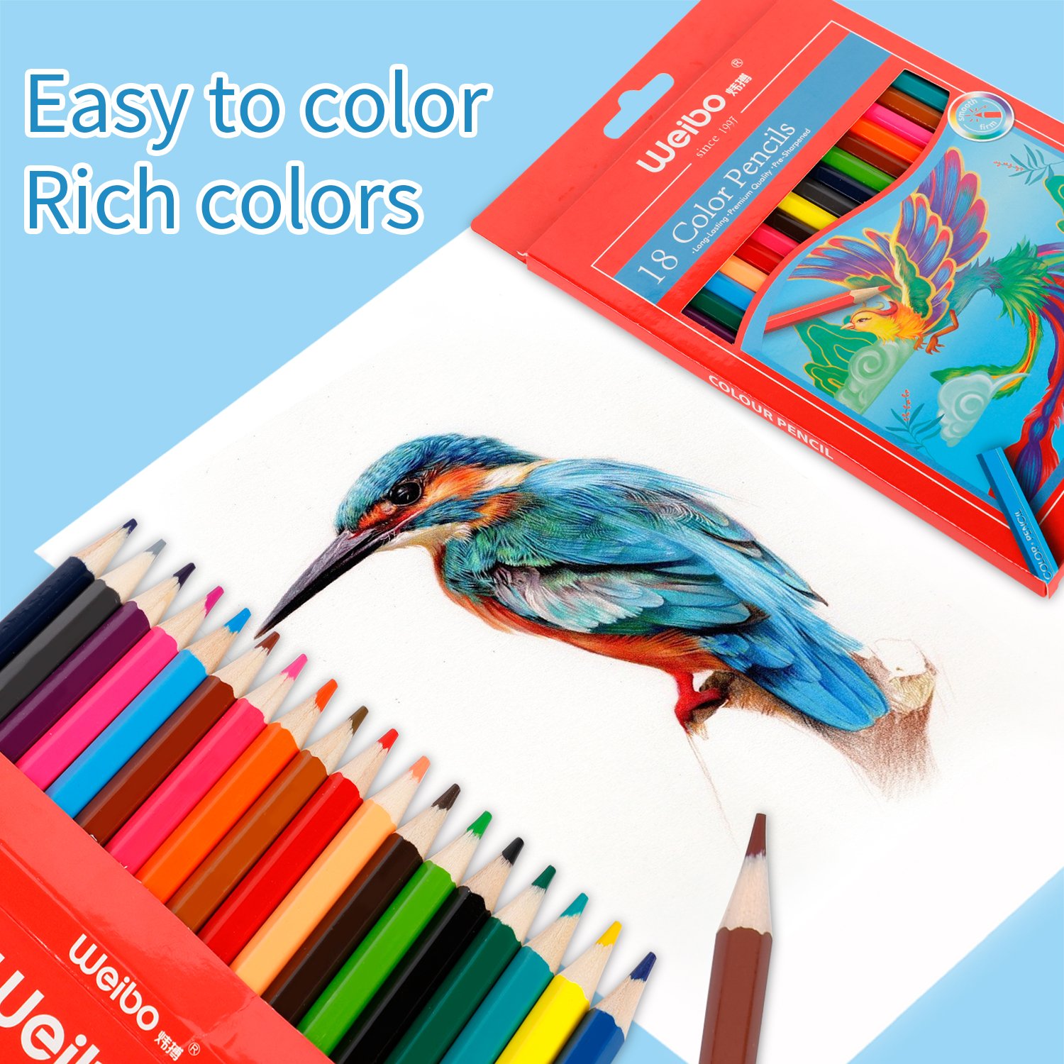 Weibo Premium Colored Pencils WB-9019-18 – 18 Pack Professional Artist Grade Colour Pencils for Drawing and Coloring