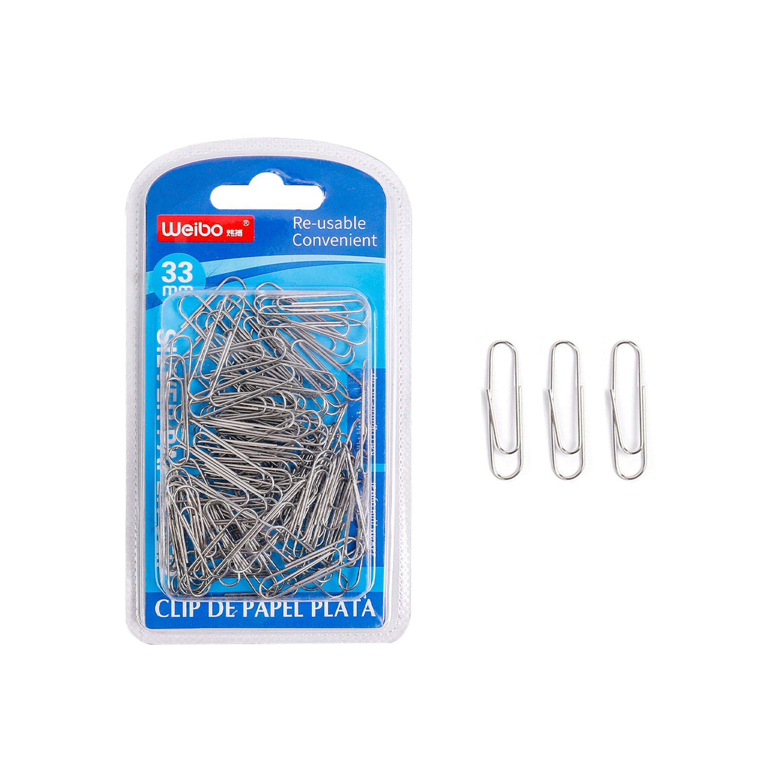 Weibo Silver Paper Clips 33mm for Office & School Document Organization