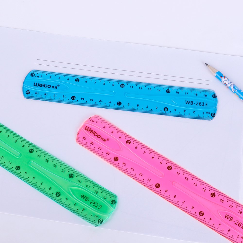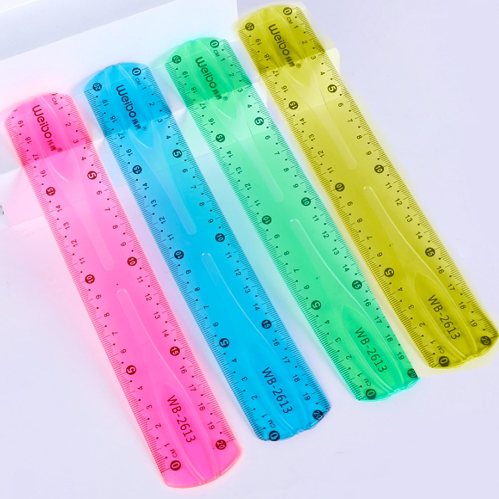 Weibo Soft Foldable Flexible Ruler WB-2613 – 20cm Bendable Transparent Plastic Ruler in Assorted Pastel Colors for Kids and Students