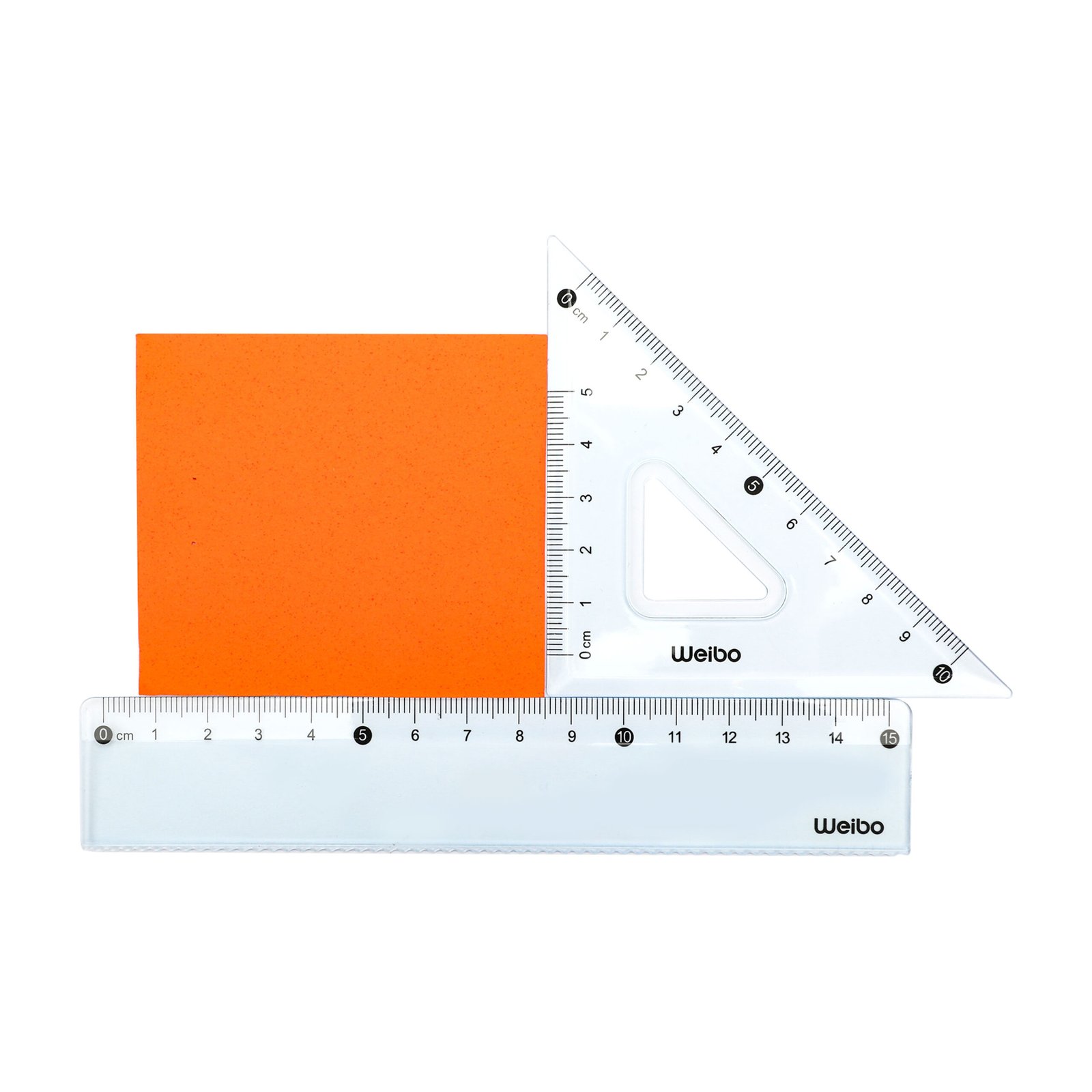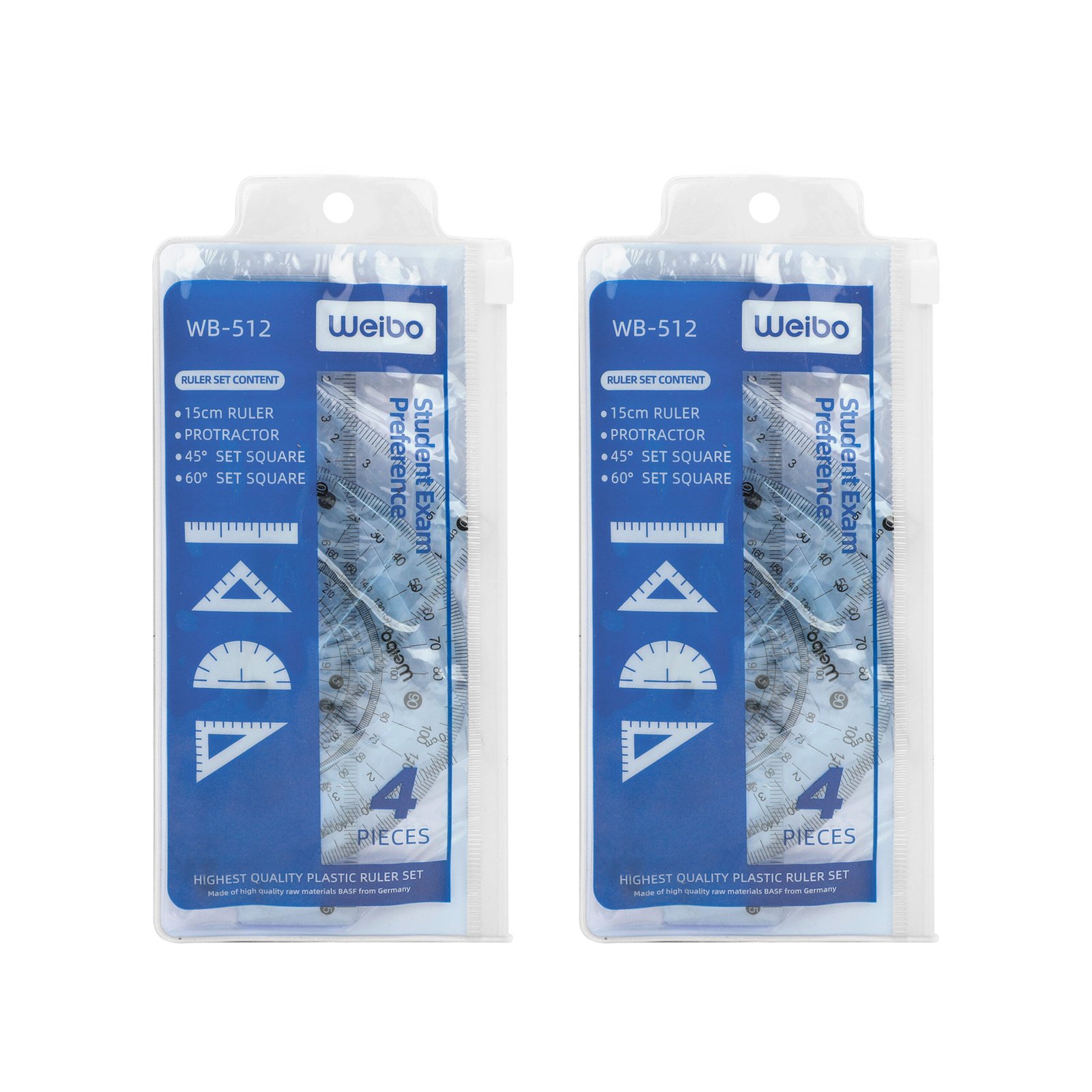 Weibo Student Geometry Ruler Set WB-512 – 4 Pieces Transparent Ruler Kit with Straight Ruler, Protractor and Set Squares for School and Drawing