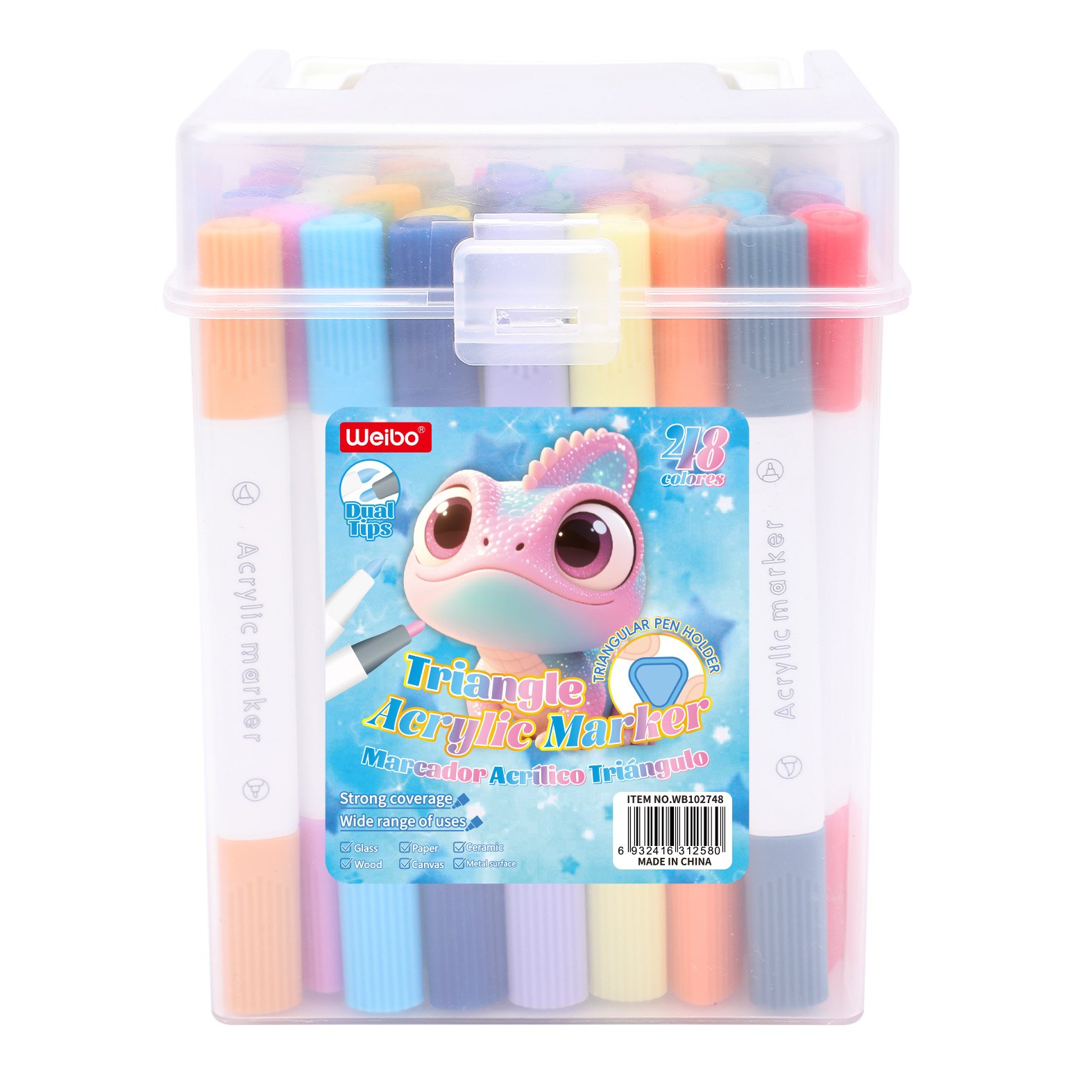 Weibo Triangle Acrylic Marker 48 Colors Set – Ergonomic Grip Multi-Surface Acrylic Paint Marker