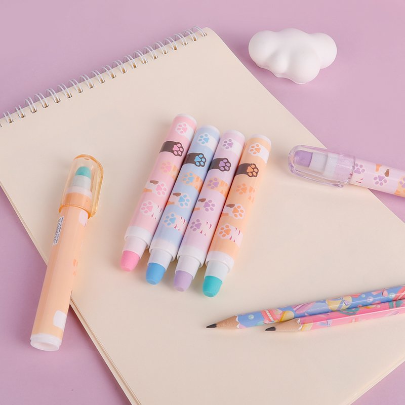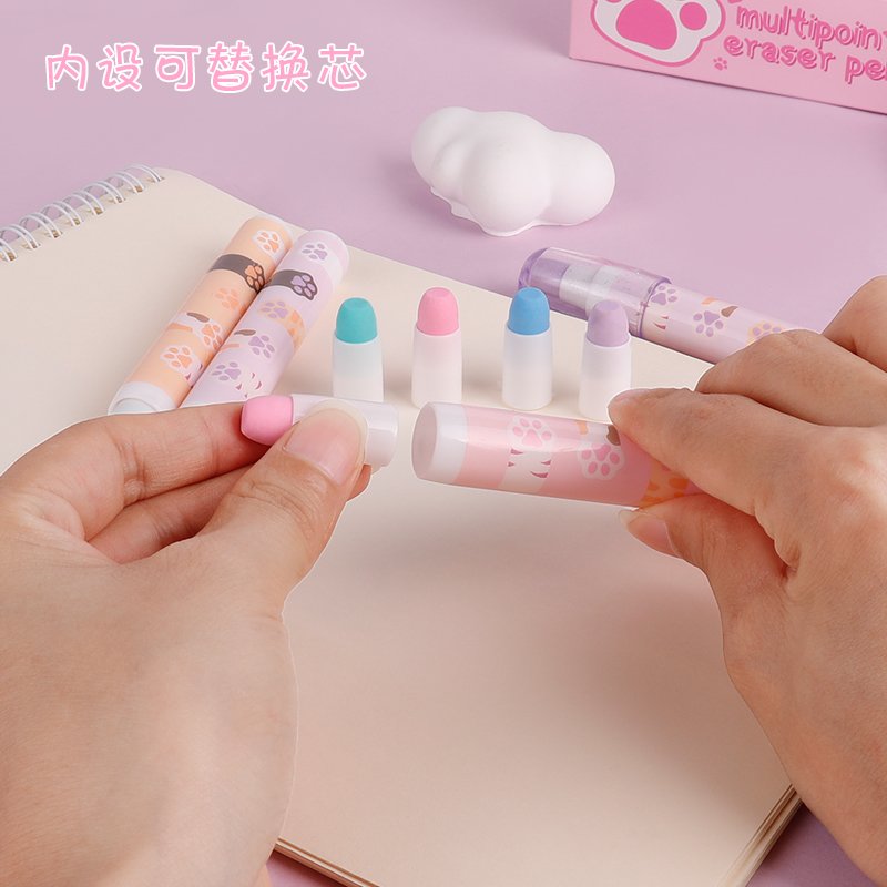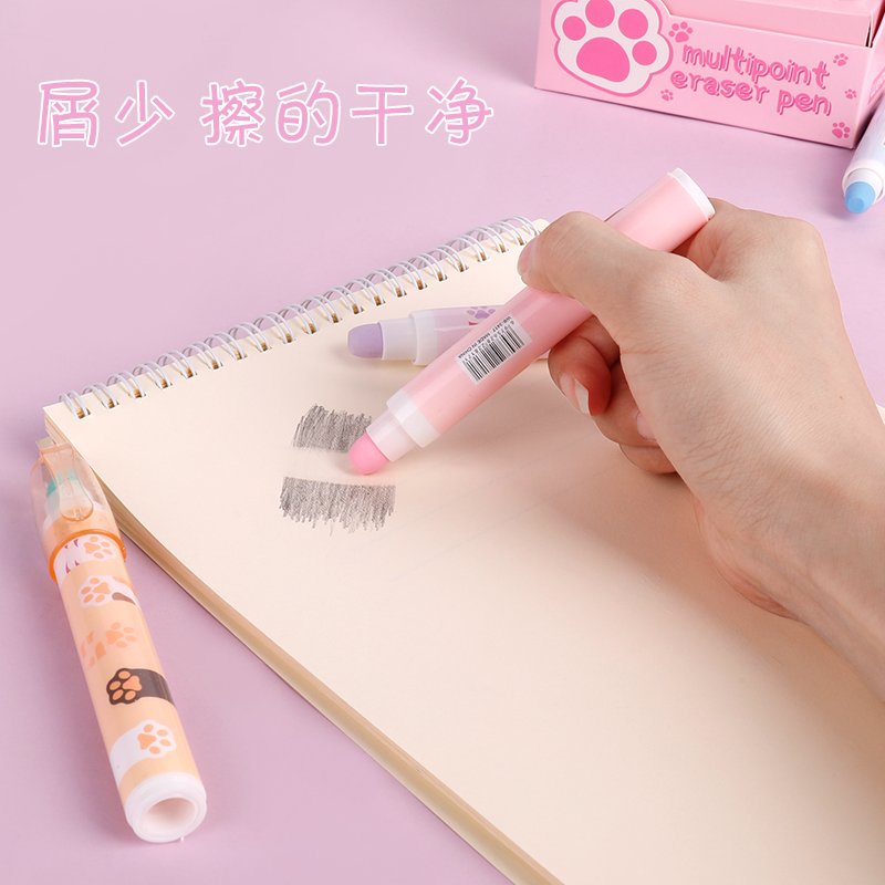 Weibo WB-3417 Cute Paw Multipoint Eraser Pen – Replaceable Core Push Eraser Pen for Kids School Use