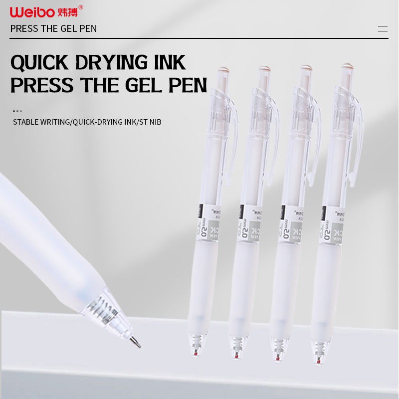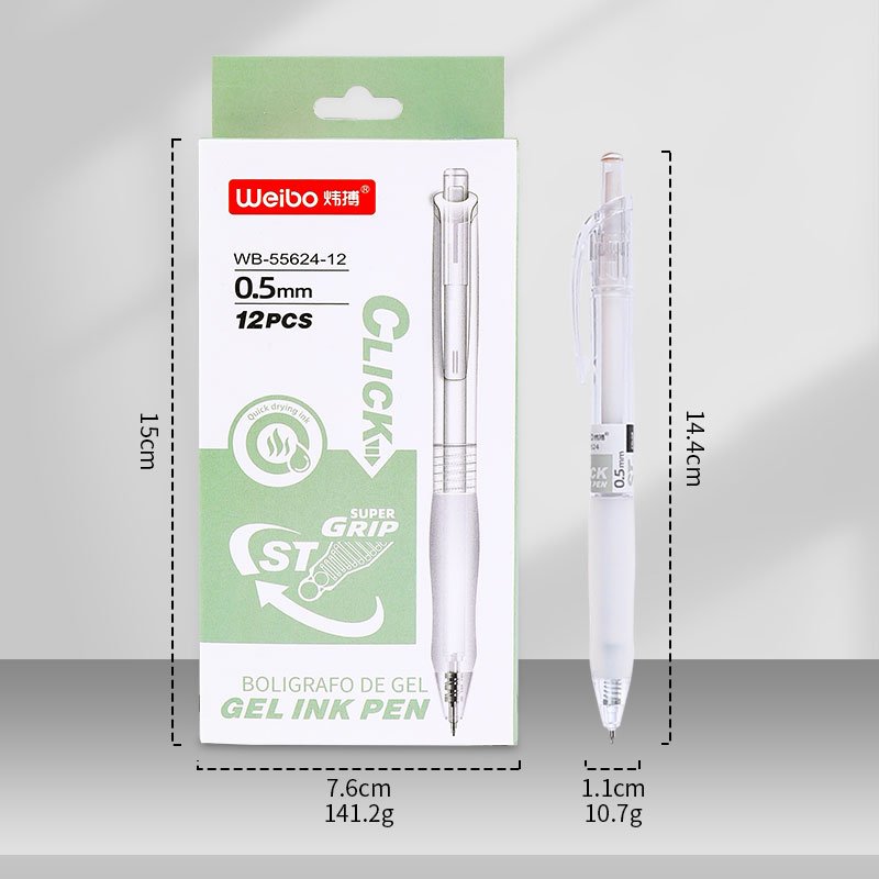 Weibo WB-55624-12 Press Gel Ink Pen 0.5mm – Quick Drying Blue Gel Pen with Soft Grip for Office & Study