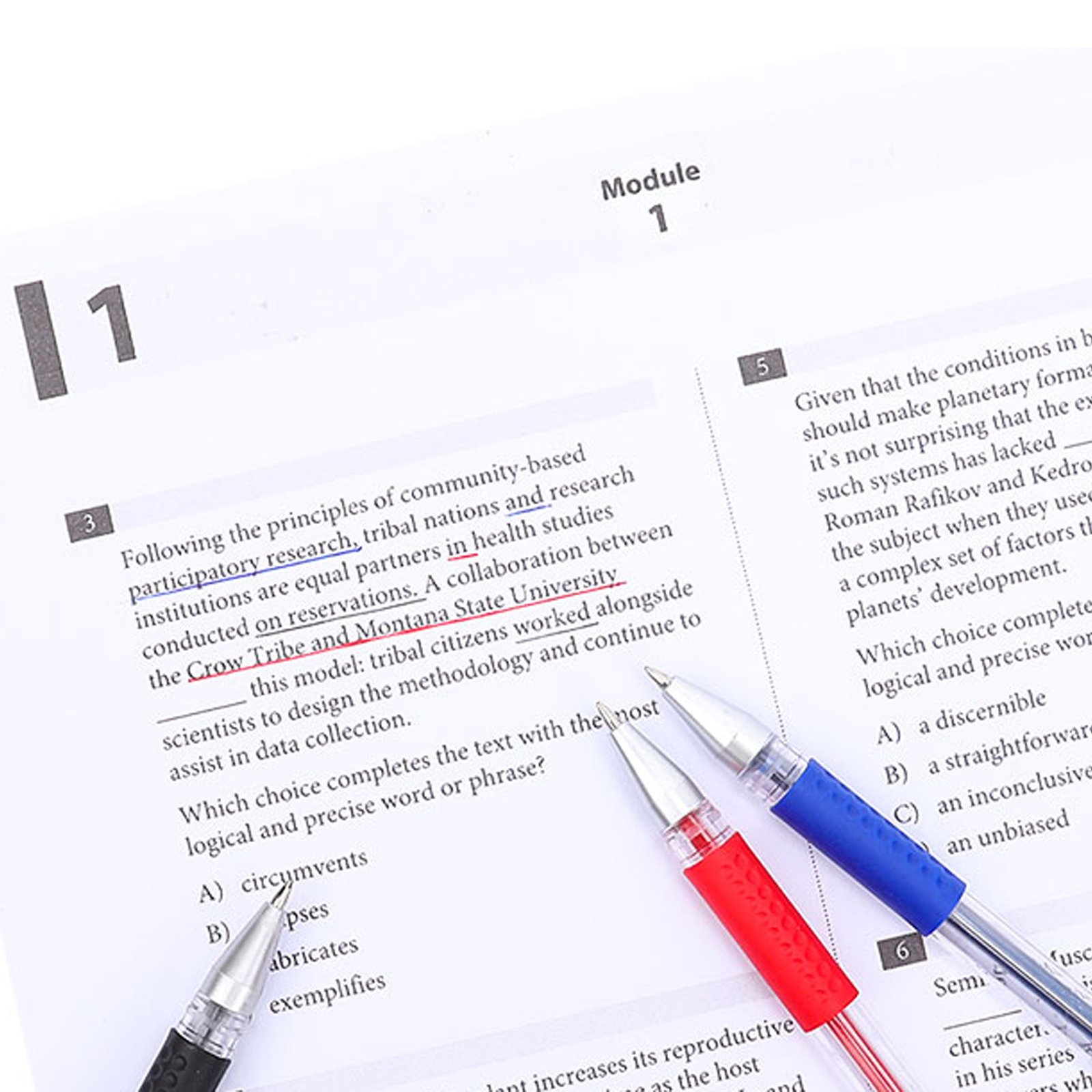 Students, office staff, teachers, exams, note-taking, marking papers, and everyday writing
