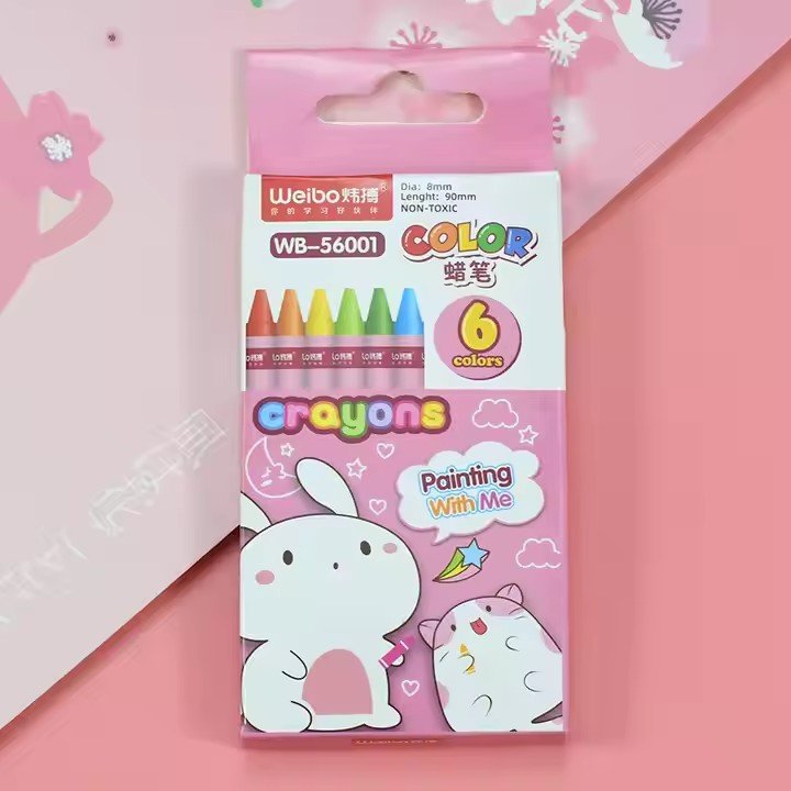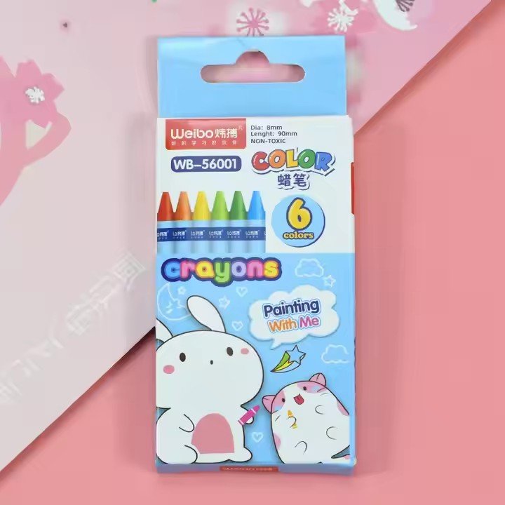 Weibo WB-56001 Kids Crayon Set – 6-Color Non-Toxic Smooth Crayons for Children Painting & Early Learning
